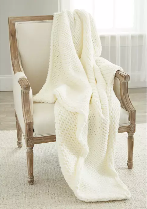 This Chunky Knit Throw by Biltmore® creates a warm and cozy atmosphere in any room it’s used in.