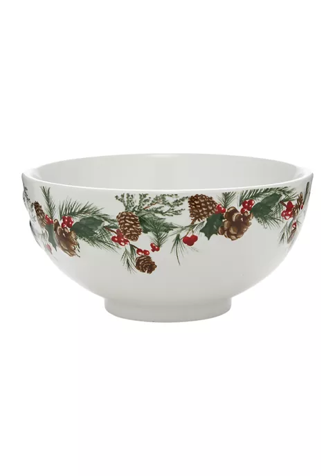 Celebrate the holidays in style with this sleek stoneware salad bowl from Biltmore® that’s intricately detailed with a holly and pinecone design.