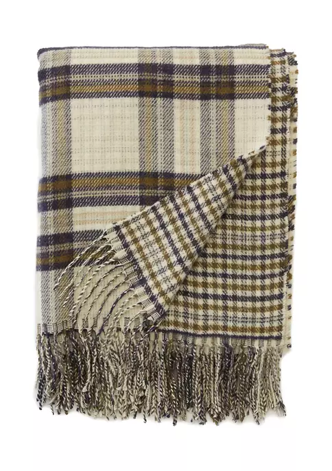 Get cozy on the couch while you watch your favorite shows in this light plaid throw blanket from Biltmore®.