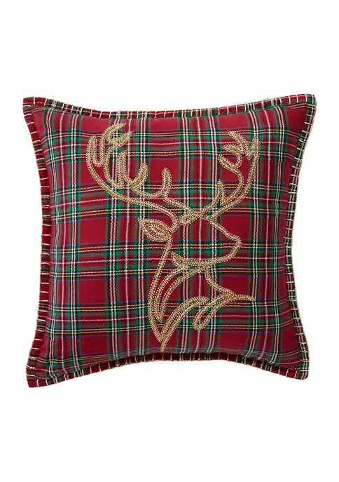 This plaid holiday pillow by Biltmore® features an embroidered stag.