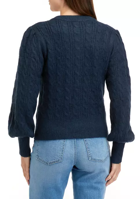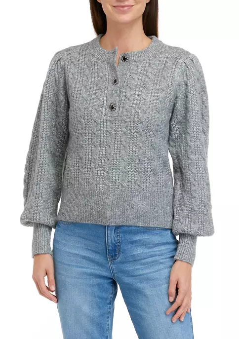 Jeweled button accents and pretty puff sleeves add a chic touch to this cozy sweater from Biltmore®.