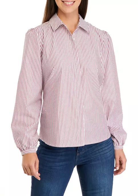 Designed to hit at the hip, this button-down shirt from Biltmore® features balloon sleeves with a slight puff at the shoulder and stretch fabric for the perfect fit.