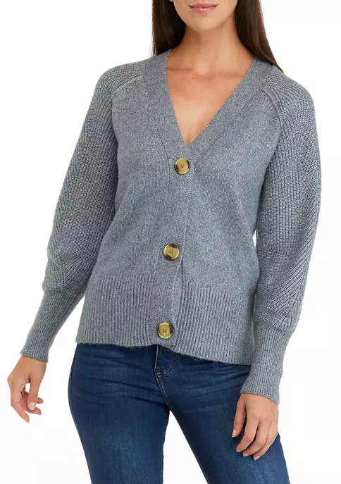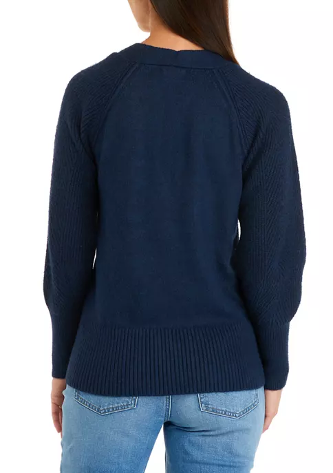 This V-neck cardigan from Biltmore® is built with raglan sleeves with novelty stitching rib trim at the cuff and hem.